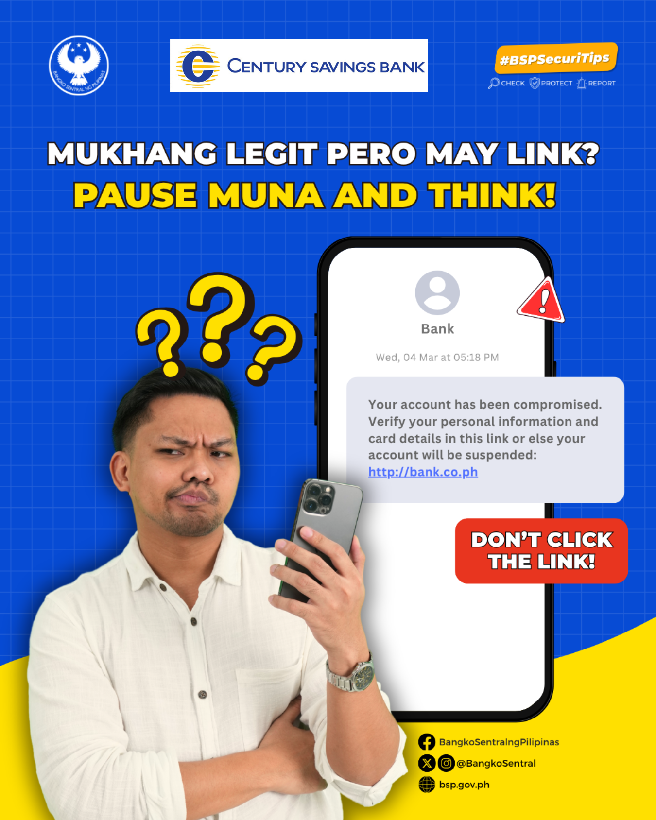 #BSPSecuriTips: Mukhang legit ang message, pero may kasamang link? 🤔