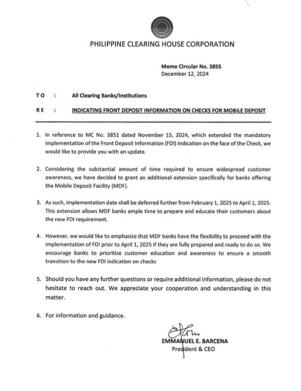 Subject: INDICATING FRONT DEPOSIT INFORMATION ON CHECKS FOR MOBILE DEPOSIT
